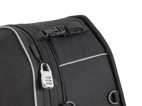 Sakwy posiadają paski do dostosowania objętości do ładunku, paski bezpieczeństwa zapewniające doskonałe utrzymanie i stabilność oraz wodoodporne pokrywy z otworami odpływowymi. Wykonane z poliestru 600D, termoformowane EVA zapewniające półsztywną powierzchnię i wewnętrzną strukturę PES, która utrzymuje kształt. Ich skład zapewnia odporność na UV i ścieranie oraz aerodynamiczny kształt zestawu. Ich zamki można zamknąć na klucz, a są łatwe do użycia w rękawiczkach. Boczne i tylne refleksyjne detale oraz uchwyty do noszenia dopełniają te wszechstronne sakwy motocyklowe. Dodatkowo, jako system ochrony, można nabyć termopad, który jest umieszczany między sakwami a rurą wydechową.