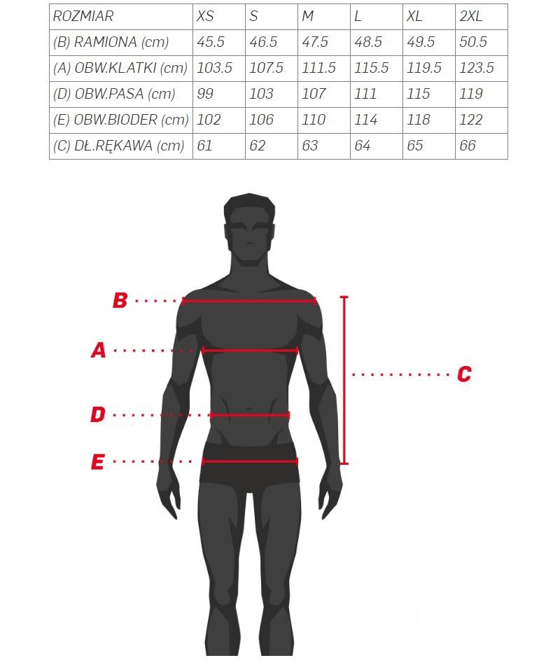 Pełna regulacja w pasie na biodrach ,mankietach oraz klatce piersiowej.