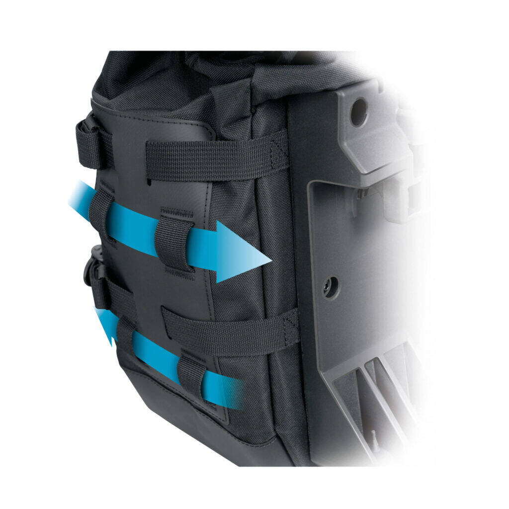 Zestaw sakw posiada 6 klamr DURAFLEX do regulacji rozmiaru sakwy w zależności od ładunku, zwiększając stabilność jazdy. Dodatkowo, wszystkie końcówki pasków posiadają zapięcia uniemożliwiające wywijanie się i luźne końce. Sakwy wyposażone są również w elementy odblaskowe poprawiające widoczność oraz wyściełane uchwyty do przenoszenia.